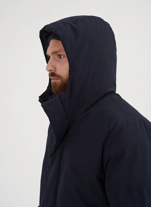 Изготовлена из высококачественного полиамида с водоотталкивающей пропиткой, что защищает от влаги и ветра. Основной наполнитель — 90% пух и 10% перо, гарантируя превосходную теплоизоляцию и легкость. В отличие от модели с съемным капюшоном, эта куртка оснащена неподвижным капюшоном для дополнительной защиты. Эта удлиненная пуховая куртка идеально подойдет для активных городских образов и оснащена всем необходимым для комфортной зимы.