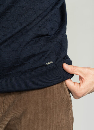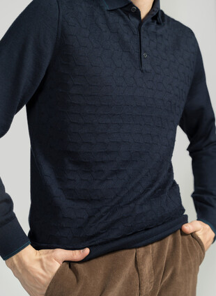 Поло с длинным рукавом от Enrico Cerini — это элегантное сочетание классики и современного стиля. Выполнено из премиального материала, состоящего на 70% из шерсти и на 30% из шелка, что обеспечивает исключительный комфорт и мягкость на ощупь. Темно-синий цвет с выработанным графическим рисунком придает изделию изысканность и стильность, делая его универсальным элементом гардероба.