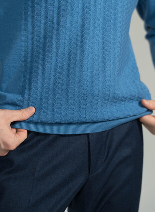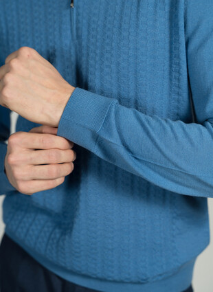 Поло с длинным рукавом от итальянского бренда Enrico Cerini выполнено из 100% мериносовой шерсти, насыщенного небесно-голубого цвета. Модель украшена аккуратным рисунком вязки по полочке, которая придает образу изящность и элегантность. Удобный ворот на молнии обеспечивает комфорт и легкость при надевании и снятии. Низ изделия выполнен на резинке, что обеспечивает плотное и комфортное облегание. Это стильное поло отлично подойдет для прохладных дней, сочетаясь как с классическими, так и с casual-образами. 100% мериносовая шерсть