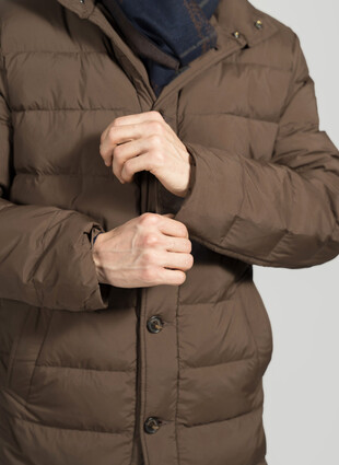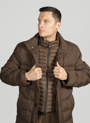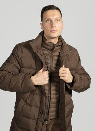 Элегантный демисезонный пуховик от Enrico Cerini выполнен в насыщенном оттенке молочного шоколада — теплый и универсальный цвет, который легко сочетается с любой базой. Модель удлинена до середины бедра, обеспечивая дополнительную защиту от ветра и прохлады. Наполнитель — премиальная смесь 90% пуха и 10% пера — гарантирует эффективное тепло, оставаясь при этом невероятно легким и невесомым. Практичная съемная подстежка спереди позволяет адаптировать пуховик под изменение погодных условий. Идеальное сочетание стиля, комфорта и функциональности для межсезонья. 90%пух, 10% перо