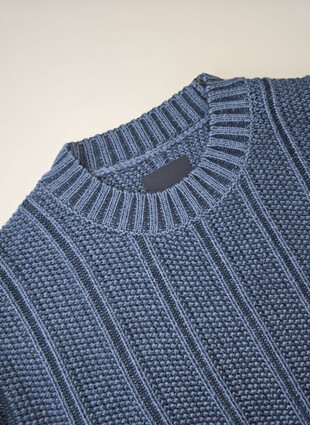 Стильный свитер от итальянской марки Impulso с выразительной объемной вязкой. Вертикальный рисунок и эффект потертости в джинсовой цветовой гамме создают современный урбанистический образ. Качественный состав (50% шерсть, 50% акрил) обеспечивает комфорт, сохранение формы и долговечность. Идеальное сочетание итальянского дизайна и практичности для холодного сезона.